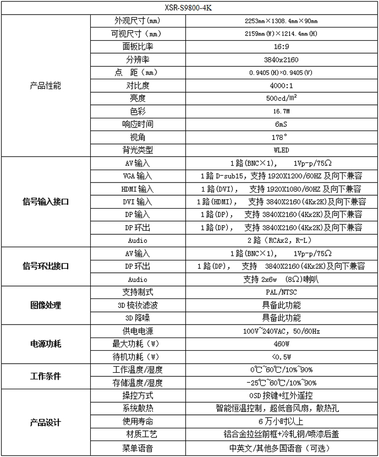 新視銳98寸4倍高清液晶顯示器產品特點: