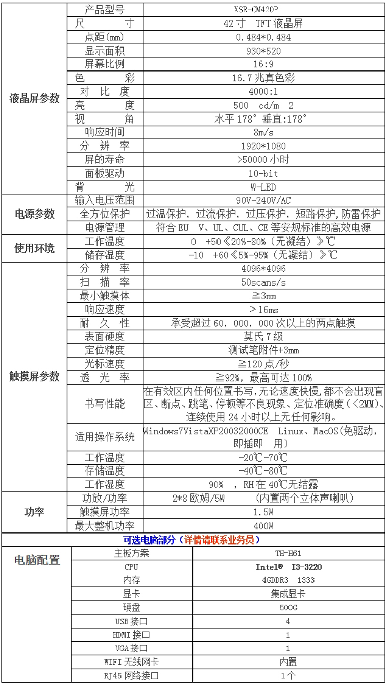 新視銳42寸觸摸一體機——立式紅外觸摸產(chǎn)品參數(shù):