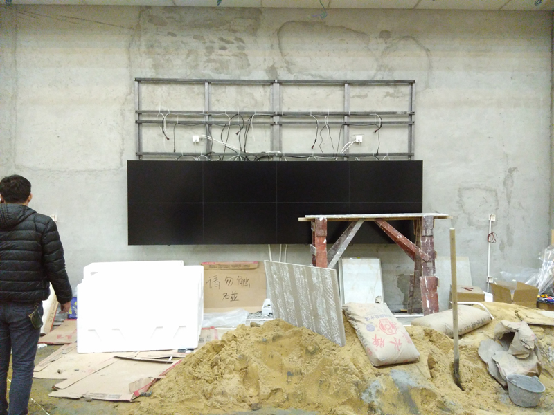 1.要求客戶根據拼接屏總尺寸做一個平面機架墻面,根據客戶的要求確定相關詳細尺寸后,開始安裝掛架。