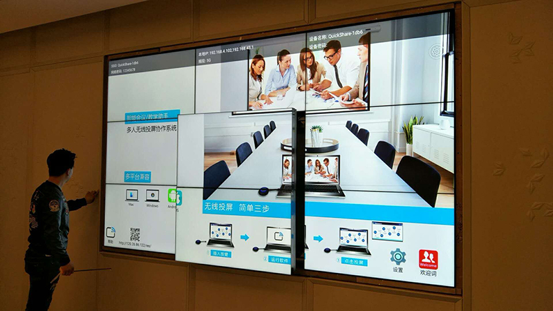 此工程所用材料由深圳市新視銳有限公司(m.kd023.cn)獨家承制,其中包括: 液壓式前維護壁掛架,1進16出高清HDMI分配器,一線品牌HDMI工程信號線材,控制線材,電源線,三星46寸超窄邊3.5mm拼縫液晶拼接單元,無線投屏系統組件等。